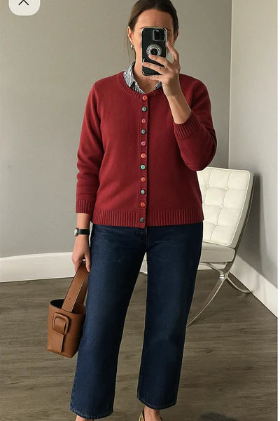 Klassischer Knopfverschluss – Lässt sich leicht offen oder geschlossen stylen und sorgt so für vielseitige Looks.